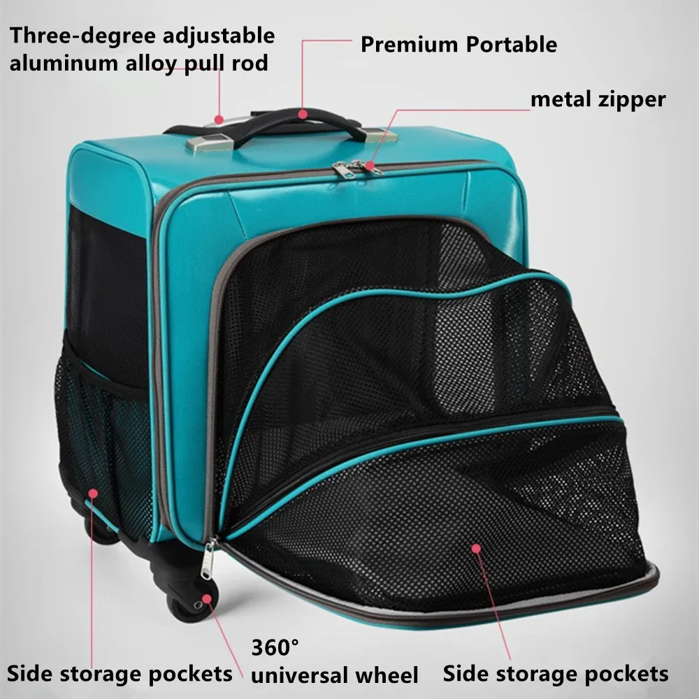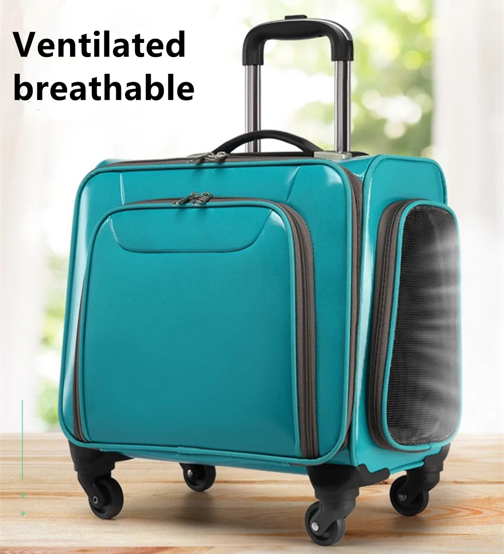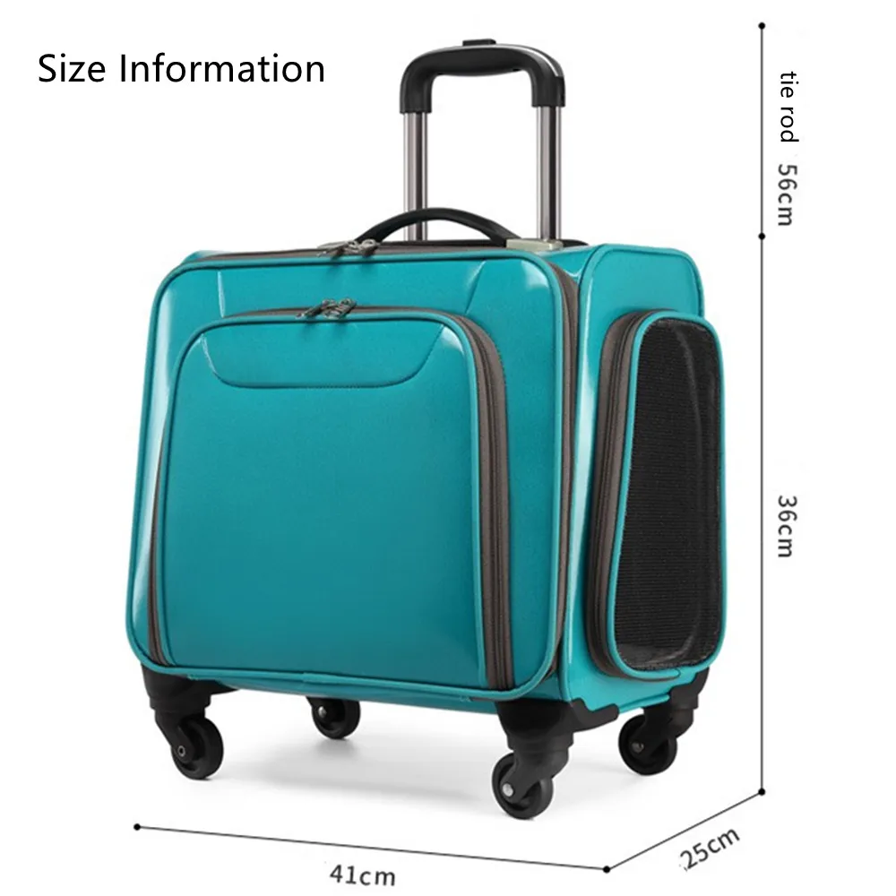 18 Inch PU Pets Trolley Case Cat Dog Travel Suitcase Bag Ventilated Breathable Mute Universal Wheel Handbag Storage Pet Stroller
