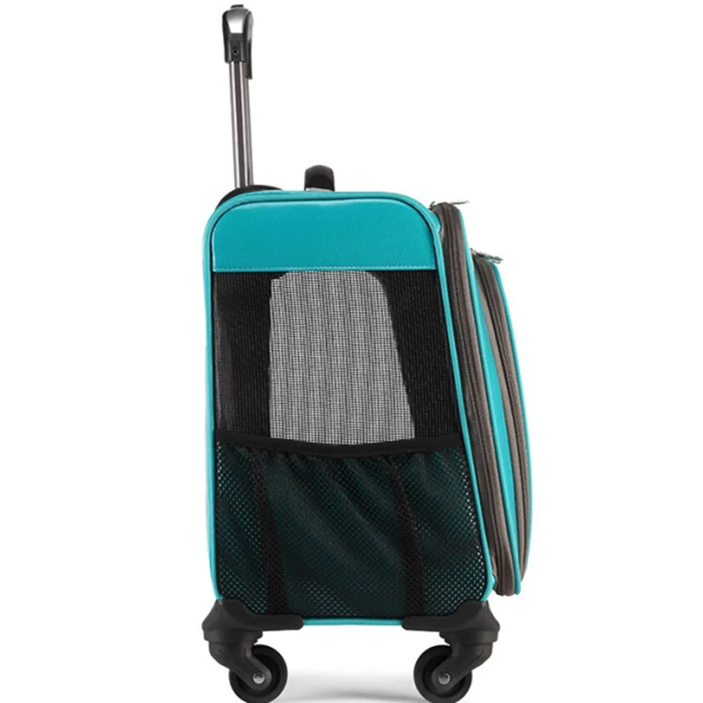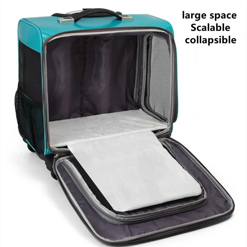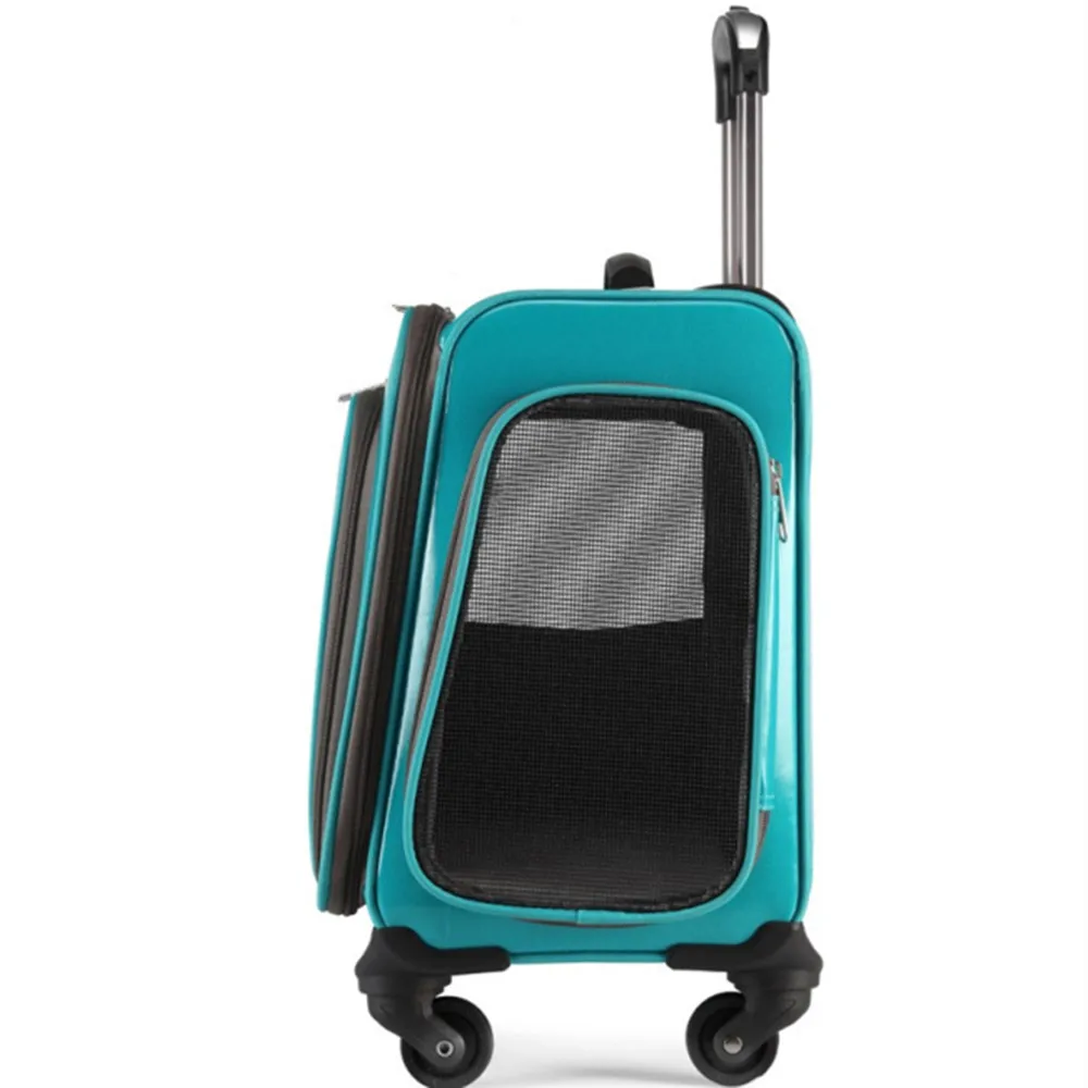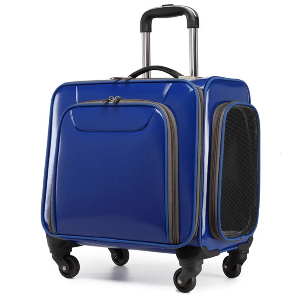 18 Inch PU Pets Trolley Case Cat Dog Travel Suitcase Bag Ventilated Breathable Mute Universal Wheel Handbag Storage Pet Stroller