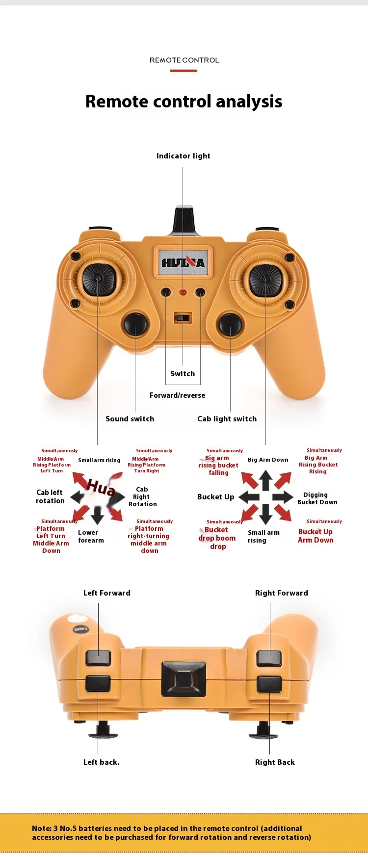 Arnew Super Large Huina Remote Control Alloy Excavator Toy C Engineering Excavator Charging And Remote Control Toy For Children