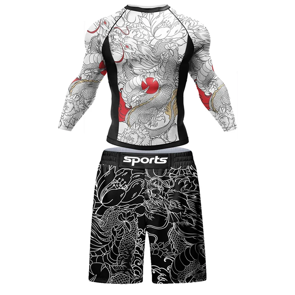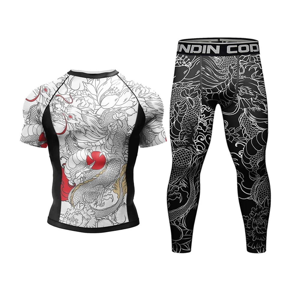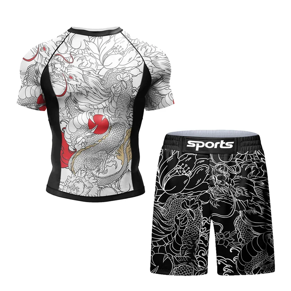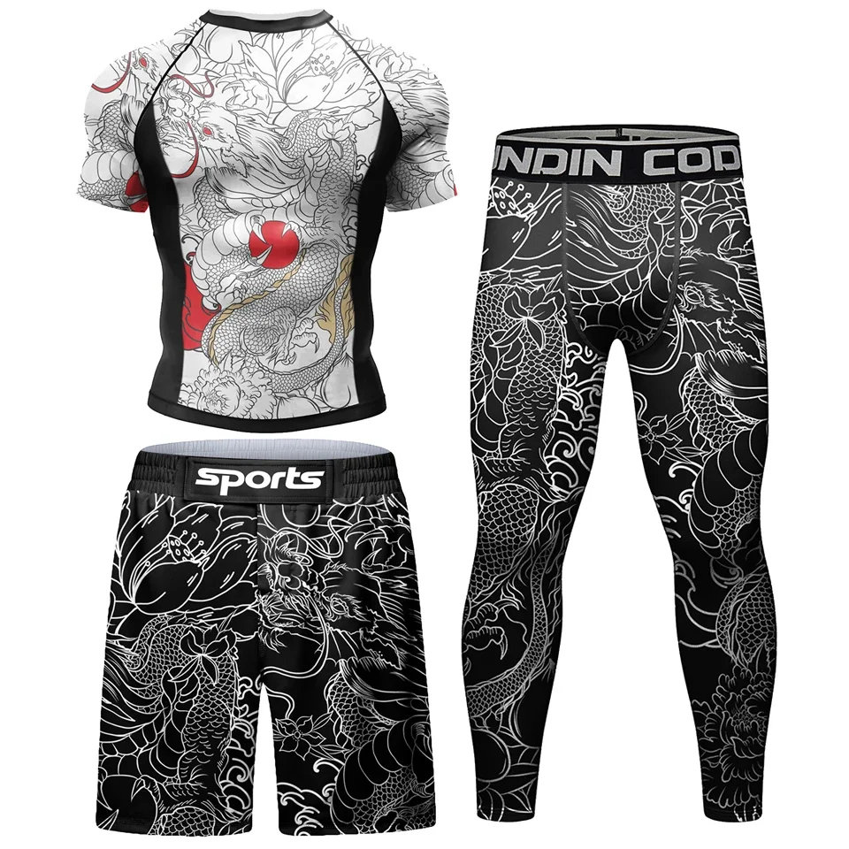 Men's Jiu Jitsu Kimono Rashguard MMA T-shirt+Shorts Compression T-shirts+Pant Sport Suits Bjj Kickboxing Muay Thai Sport Boxing