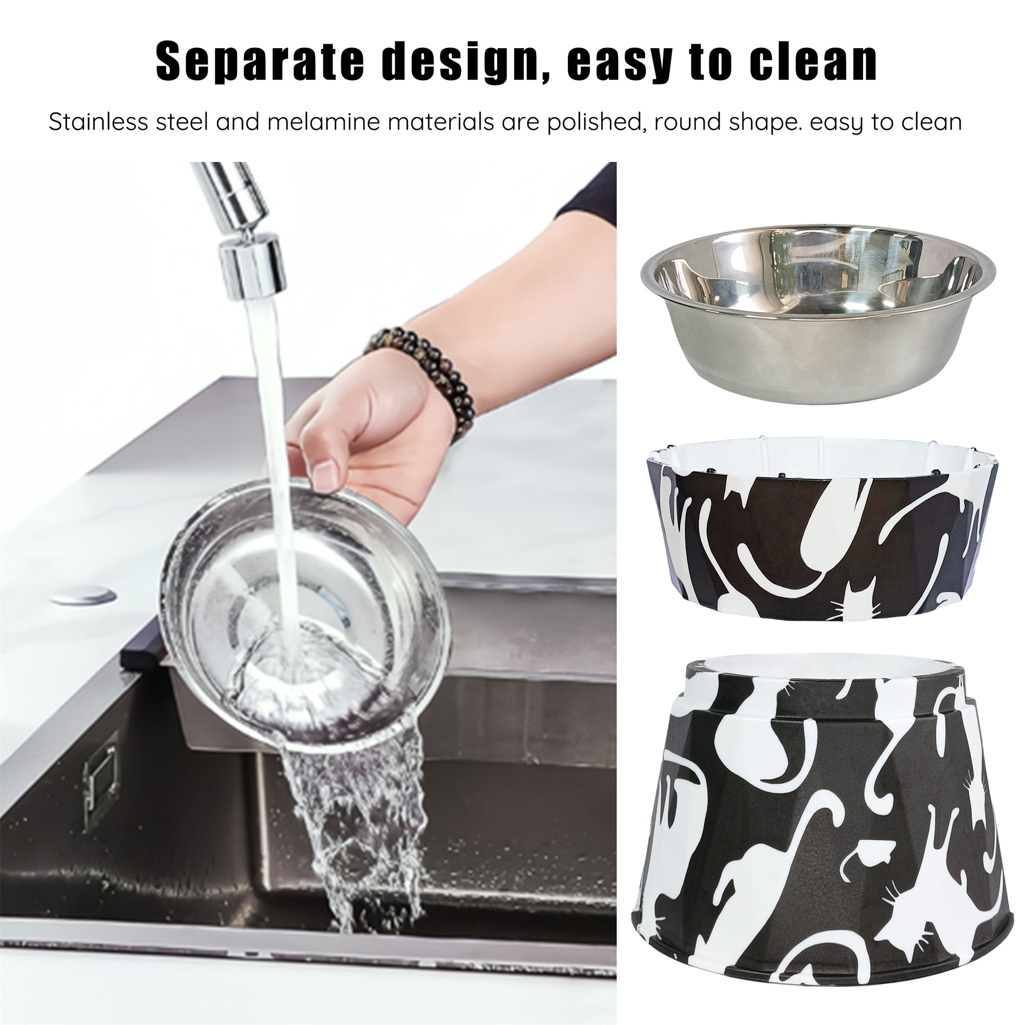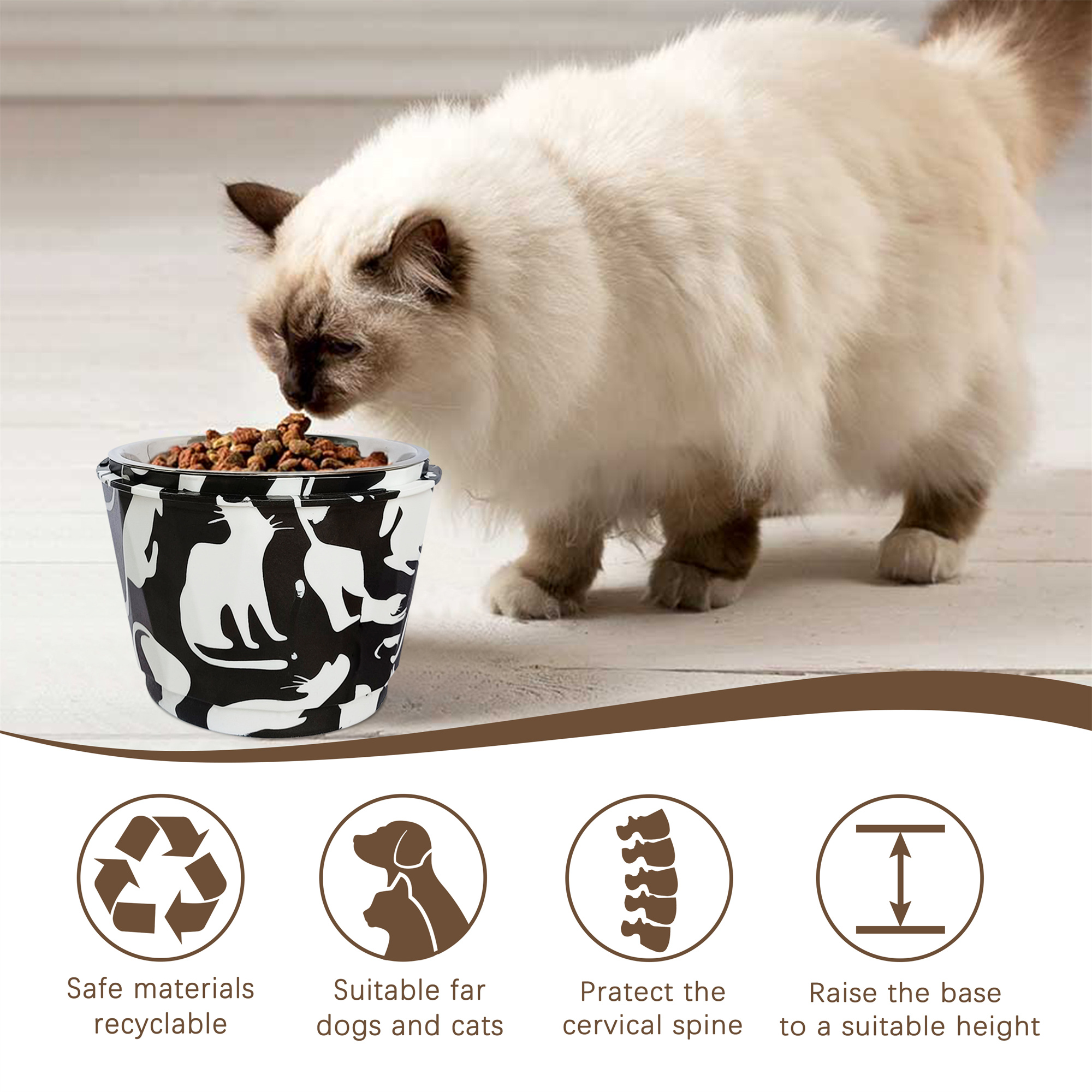 SSY 6" Anti-Vomiting Stainless Steel Pet Bowl for Small and Medium Dogs and Cats - Non-slip, Modern Design with Spine Protection