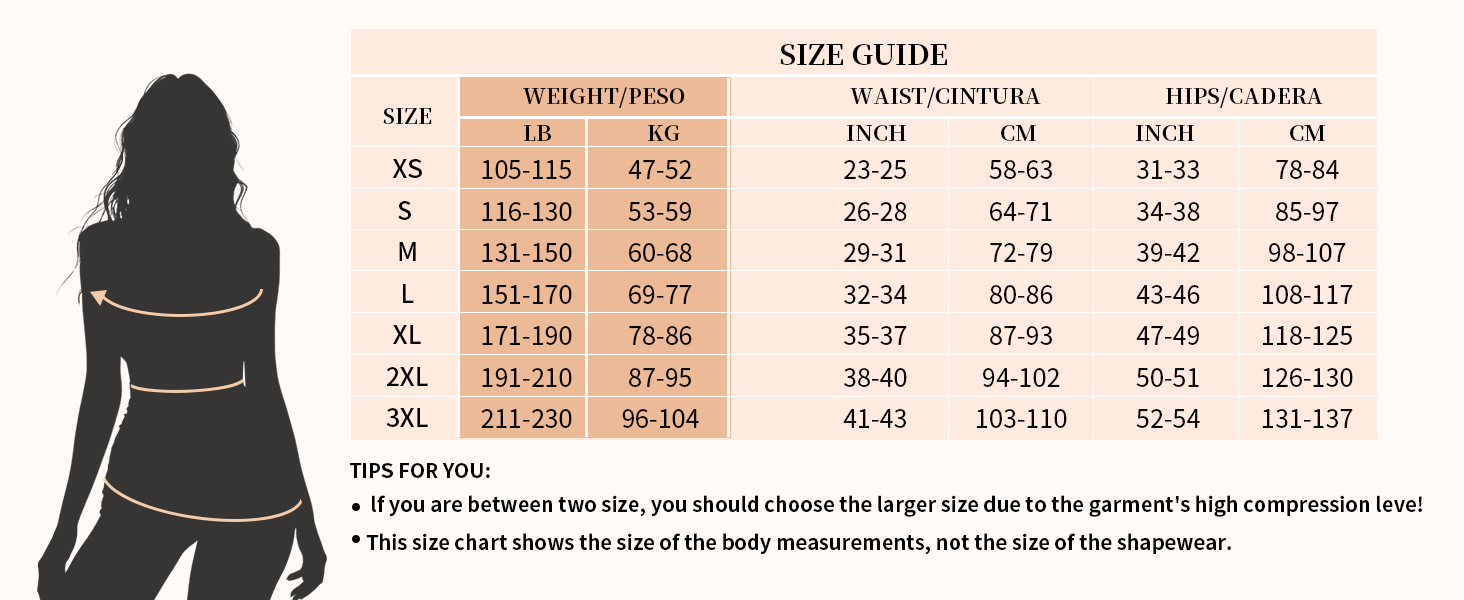 How to Choose the Right Size:Please read our waist trainer size chart before your purchase,And please choose the size according to your real waist circumference, our sizes fit most people.