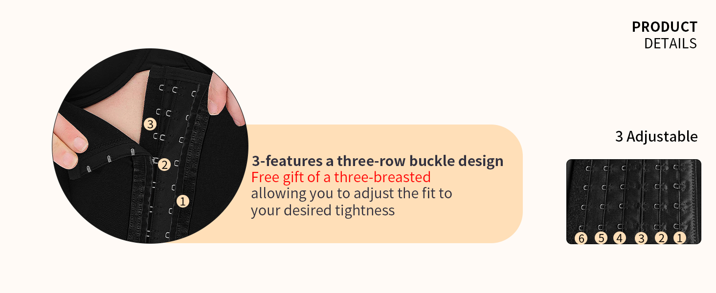 6 Row Hook and Eye Waist Trainer: 6 rows of hooks and eyes allow you to adjust the compression you need,Because we have added another 3 rows of hooks on the basis of the original 3 rows of hooks and eyes, giving you more choices without the trouble of not being able to find a suitable waist trainer, increasing the choice,adapting to different body types and compression preferences, and instantly tighten your abdomen for a long-lasting waist tightening effect.this waist trainer suitable for plus-size figures as well.