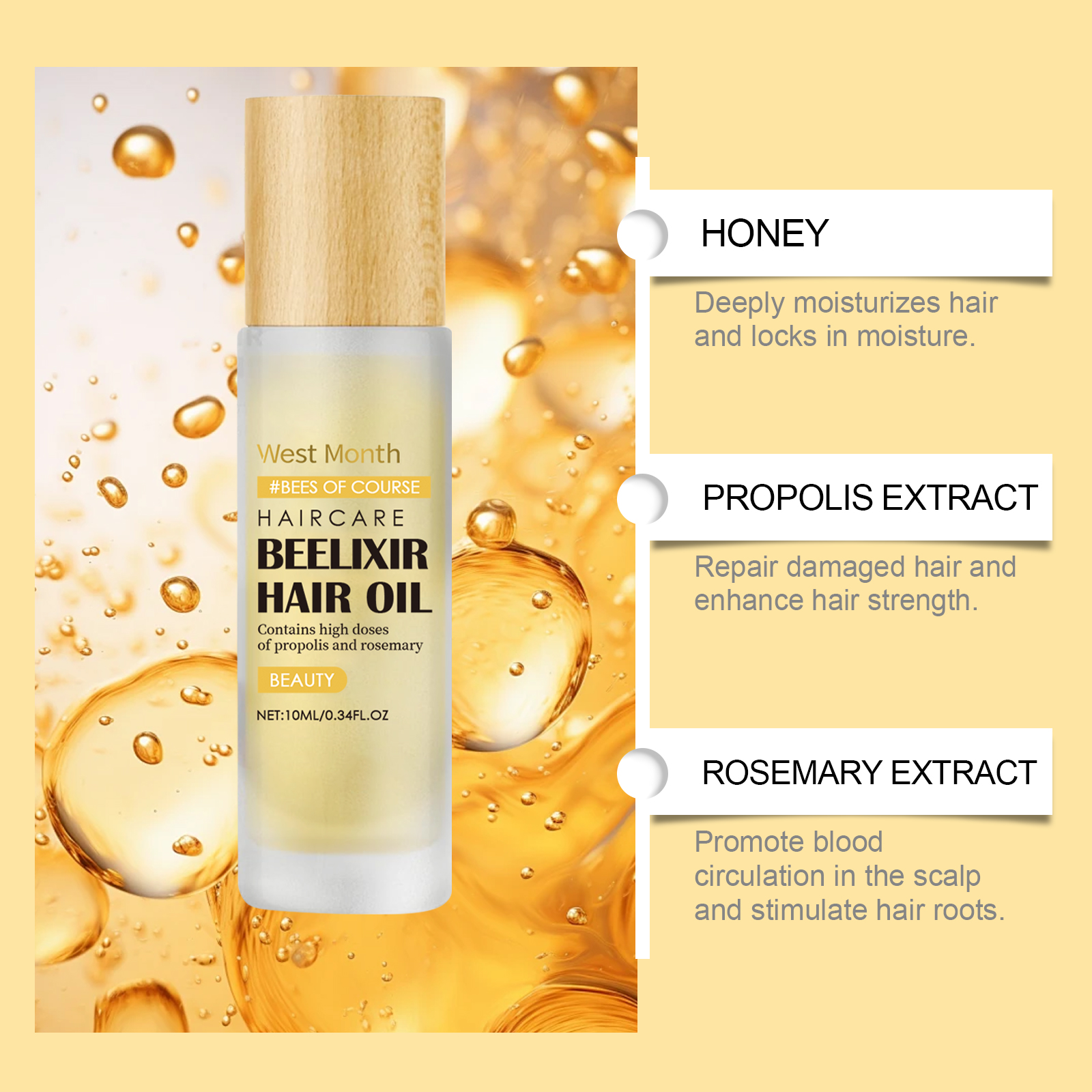 West&Month Honey Hair Care Essential Oil, Honey Rosemary Repair Dry Hair End Moisture Nourishing Oil